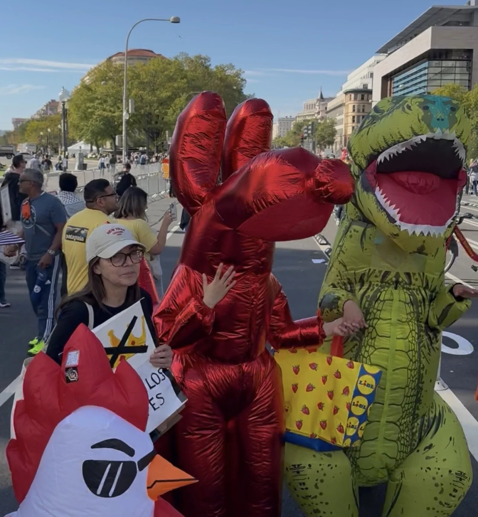 Instead, the rallies were most notable for a funhouse Noah’s Ark of frogs, pandas, koalas, woodchucks, sharks and lobsters. Taking a page from the protest playbook in Portland, people showed up in inflatable animal costumes.