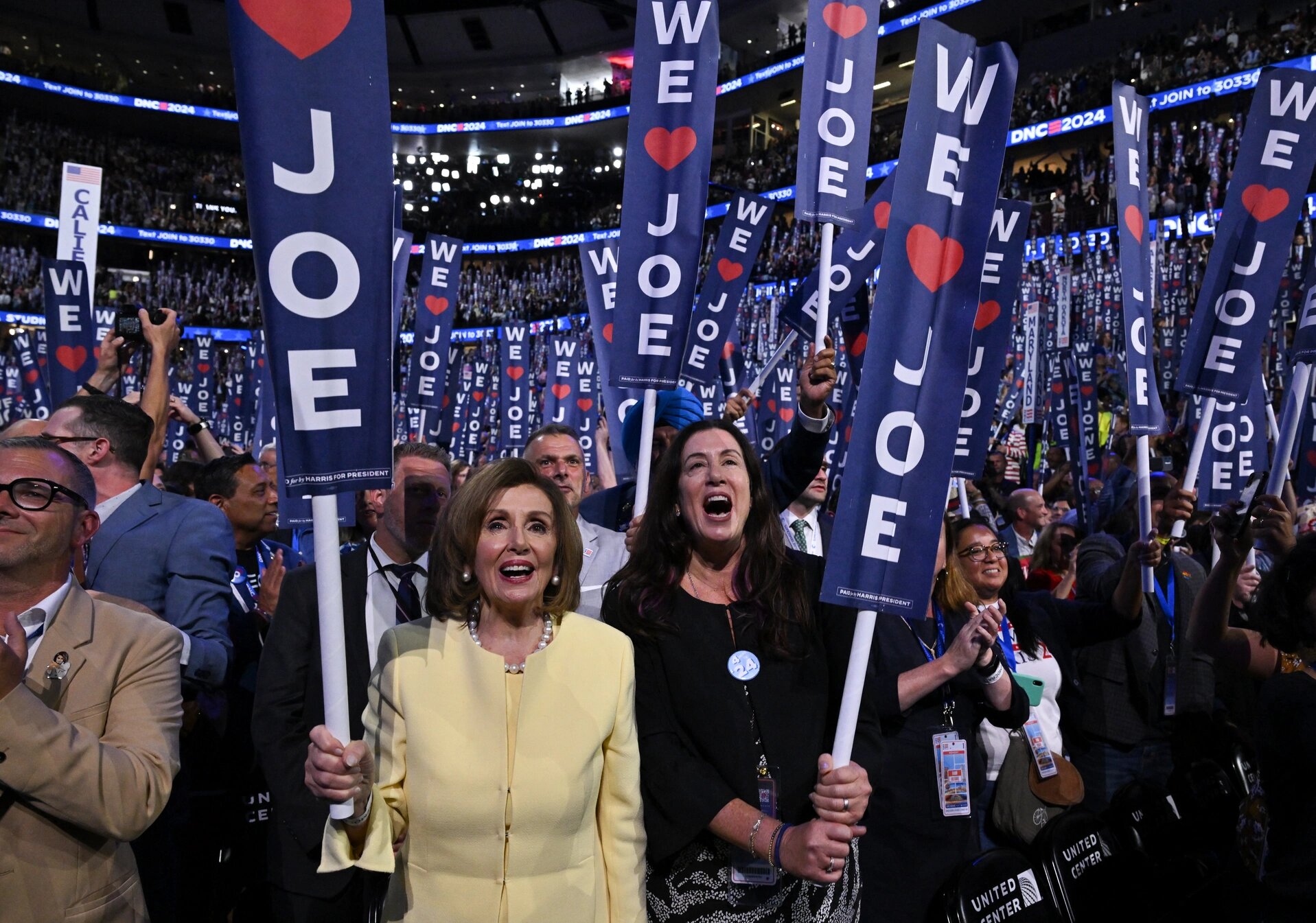 Former House Speaker Nancy Pelosi, left, and her daughter, party organizer Christine Pelosi, are seen at the 2024 Democratic National Convention in Chicago. | Robyn Beck/AFP via Getty Images
