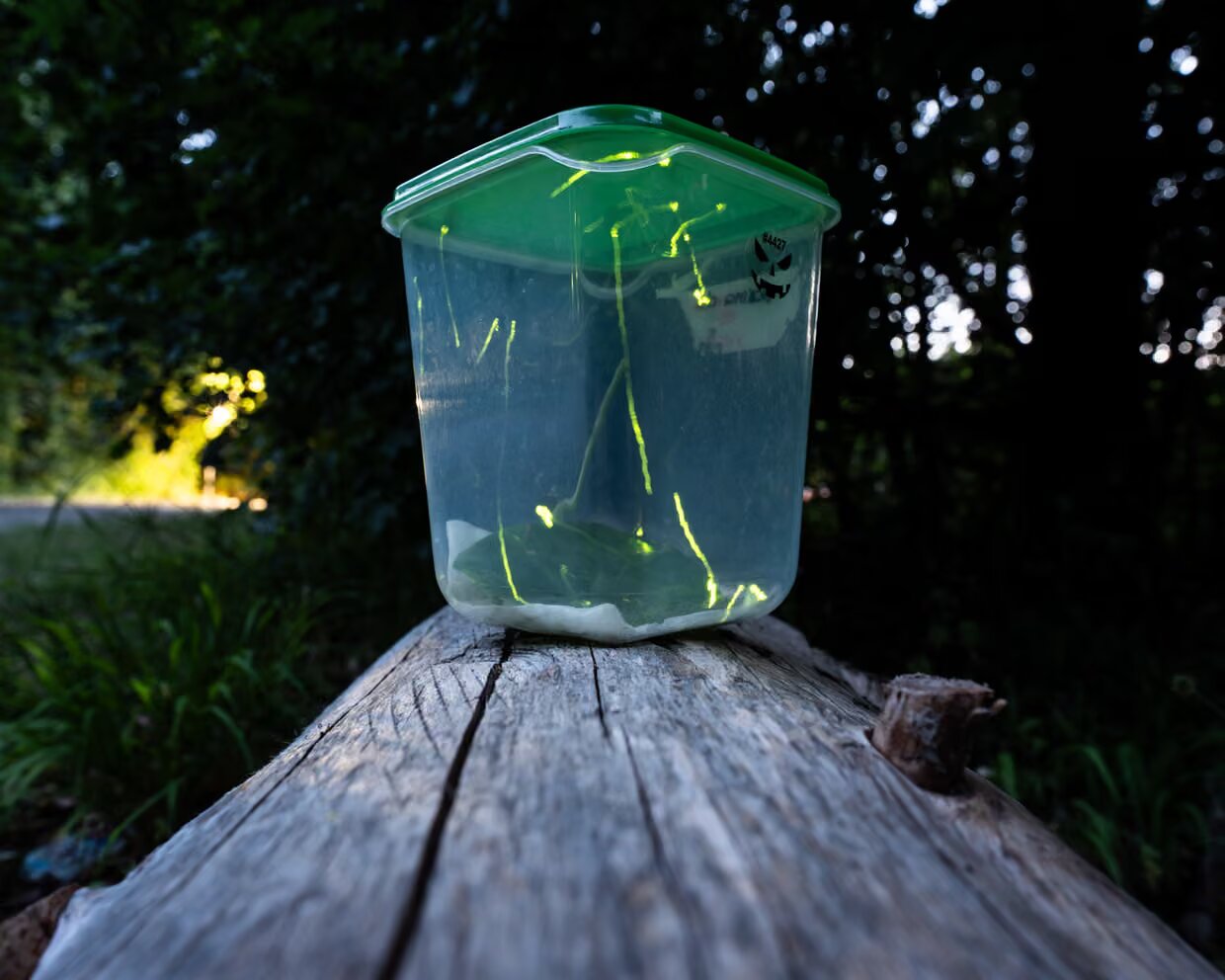 Amanda Bennett, 48, gently pulls a female from the grass and places it on her hand, transfixed by the green glow that spreads across her fingers. “I can’t believe I’ve never seen one before,” she says.