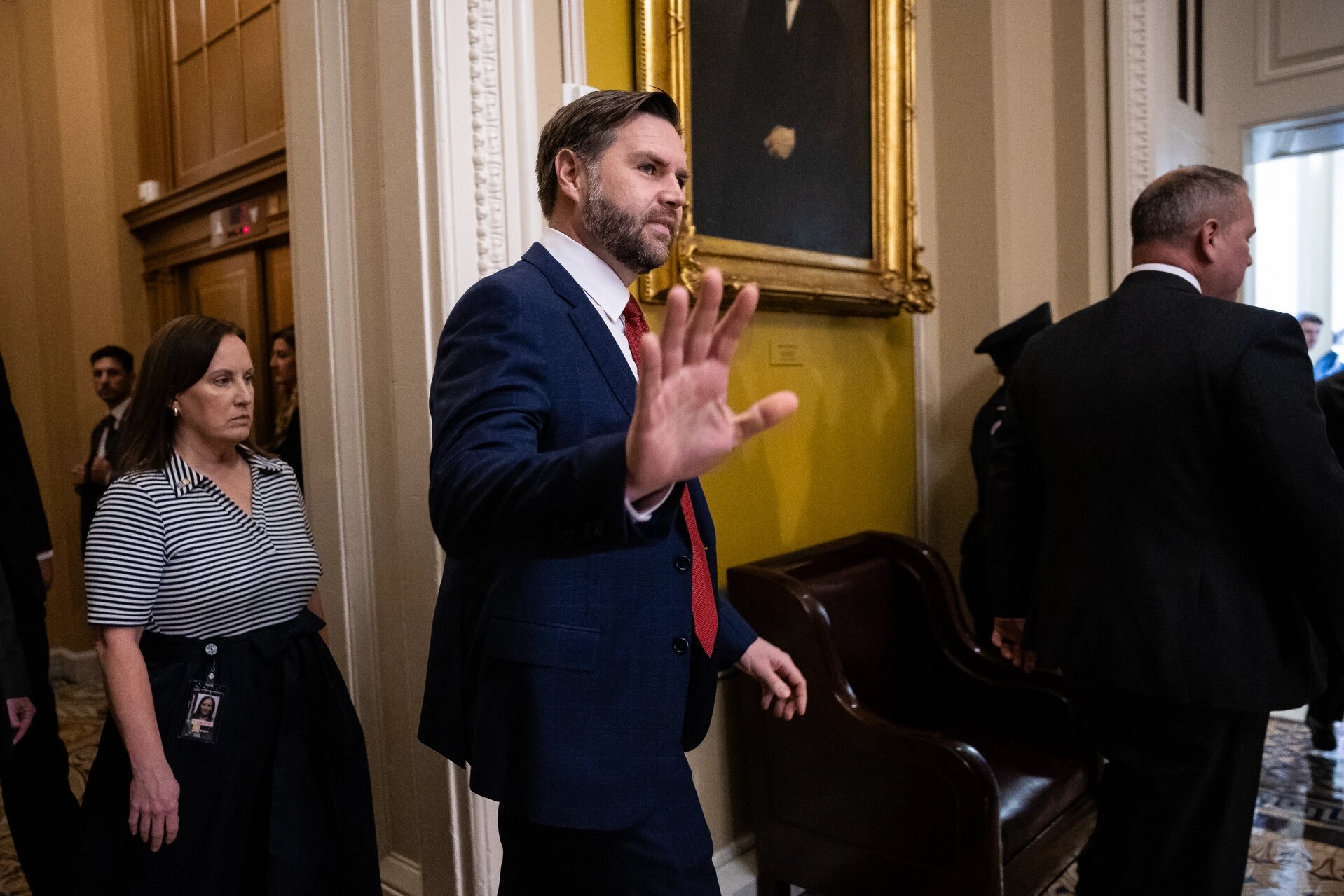 Vance stressed to GOP senators in the room to stay united and force Democrats to reopen the full government. He counseled against passing narrow “rifle shot” exemptions to the shutdown, according to one GOP senator who attended.